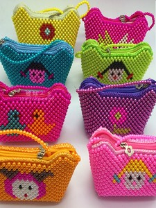 メーカー卸売手織りワンショルダースイートレディビーズバッグ斜め漫画パールバッグ子供用スナックバッグ
