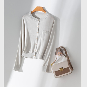 通気性の良い生地!フレンチラウンドネックニットカーディガン夏薄い日焼け止めシングルポケットアウタートップ女性用