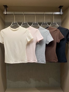 在庫あり 25 新しい SK*MS カーダシアン同スタイル コットン ストレッチ スリム ウエスト 半袖 右肩 Tシャツ トップス