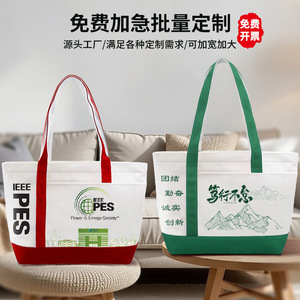 ロゴプリント入りカスタムキャンバスバッグ、横型大容量立体トートバッグ、迅速配送、ポータブル環境に優しいショッピング