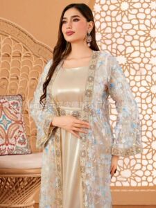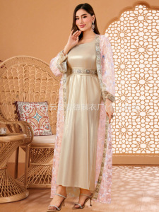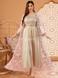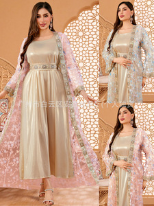 クロスボーダーイスラム教徒の女性の新しいエレガントで豪華な刺繍レースのツーピースローブアバヤ中東アマゾン