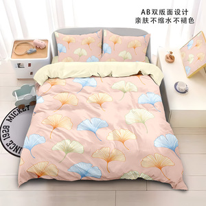 サマーベッドウォッシュコットン4点セット3Dプリントシンプルクマ学生寮賃貸住宅起毛シーツと掛け布団カバー