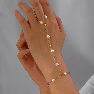 ヨーロッパとアメリカのクロスボーダーチェーンブレスレット女性用シンプルパールリングフィンガーワンピースチェーンファッションフィンガーブレスレット卸売