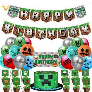 新しい在庫あり Minecraft ピクセルバトルテーマセット紙皿フラグペーパータオルバルーンパーティー装飾用品