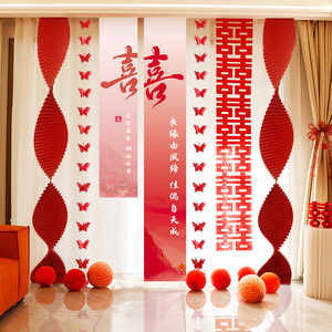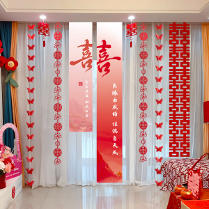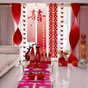 結婚式の部屋の装飾セット男性の結婚式の高級マスターベッドルームリビングルームカーテンロングウェディングウェーブペーパー