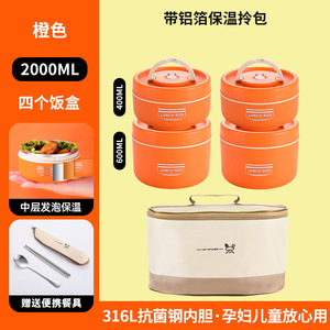 オレンジ-【保温モデル】4層2.4L(大4)+食器+保温バッグ
