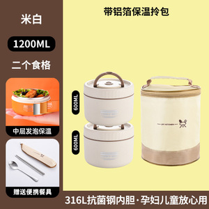 クリームホワイト-【保温タイプ】2層目1.2L(大2個)+食器+保温袋