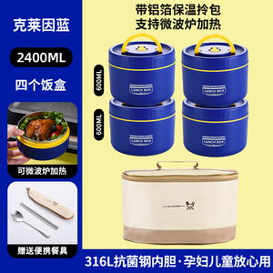 クラインブルー-【保温モデル】4層2.4L(大4)+食器+保温バッグ