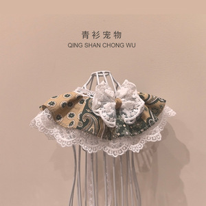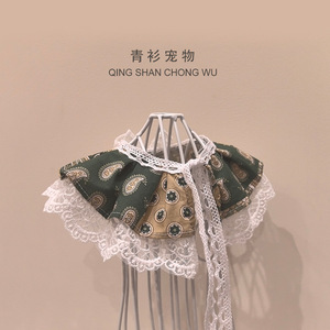 【Qingshan Pet】オリジナルレース唾液タオルペット猫犬ラグドール服ダークグリーンスカーフ