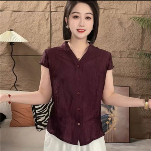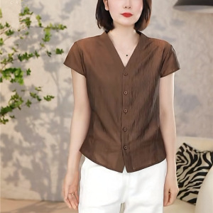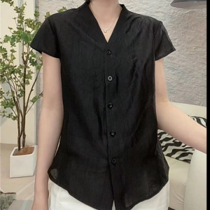ドロップシッピングライブブロードキャストホットスタイル2025気質新しい夏無地半袖シャツ女性のウエスト痩身ベスト