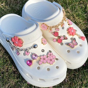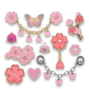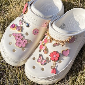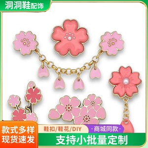 新款cross洞洞鞋鞋花金属樱花鞋扣配饰配件粉色系花朵diy装饰品