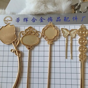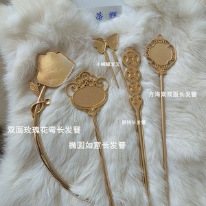 如意海棠銅貨ロングヘアピンショートバタフライヘアフォーク刺繍入り宋錦レザーヘアアクセサリーアクセサリー材料メーカー