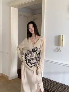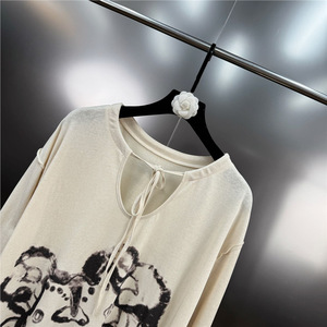 正しいバージョン! 2025 春夏フレンチレトロスタイルラウンドネックルーズ長袖パーソナライズパターン文学トップ