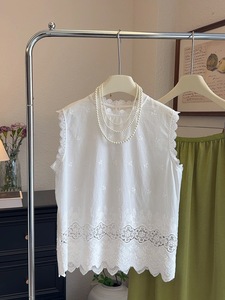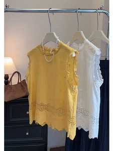 韓国スタイル中空かぎ針編みノースリーブシャツベスト女性のための夏の 2025 新しいファッション年齢を減らす甘いシャツトップトレンディ