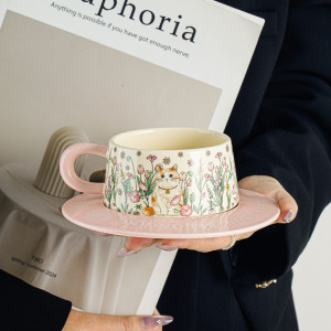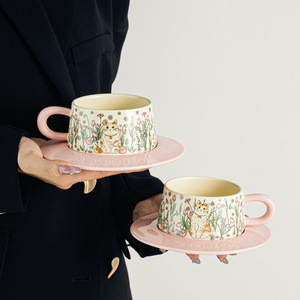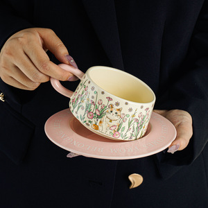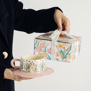 レトロな油絵のようなセラミックコーヒーカップとソーサーセット、ハイエンドのラテカップギフトボックス、女の子へのギフトとして