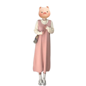 春先の優しいスタイルのルーズロングピンクベストドレス女子学生ニットボトムストップスのセット