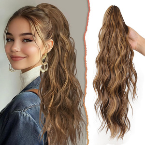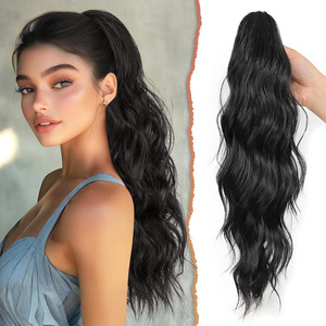 国境を越えた貿易大型グリッパー水波紋巾着ポニーテール耐熱繊維かつらポニーテール 125 グラム女性のかつら