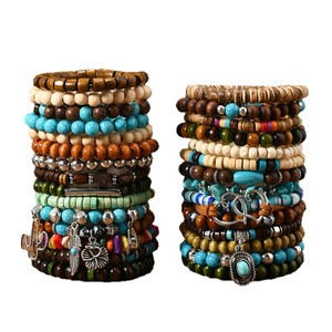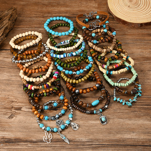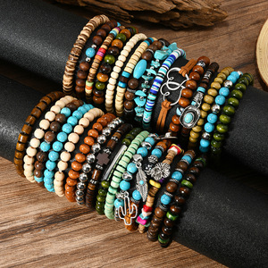 国境を越えた新製品ヨーロッパとアメリカのファッションレトロ愛サボテン羽多層弾性ロープ木製ビーズビーズ 30 個ブレスレット
