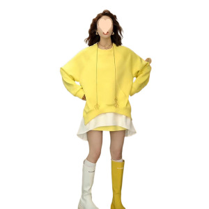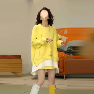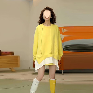设计感拼接假两件卫衣裙胖特大码300斤春秋宽松遮肚显瘦连衣裙
