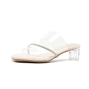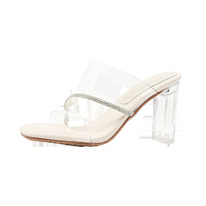 女性が外で履くためのクリスタルハイヒールスリッパ 2025 夏の新しいスタイルのダイヤモンドストラップ透明サンダル人気のクリスタル厚底サンダル