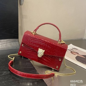2025 新しいビッグブランドデザインヒョウヘッドパテントレザー光沢のあるボックスバッグハイエンドの質感シングルショルダークロスボディバッグクロスボーダーホットセール