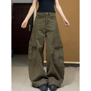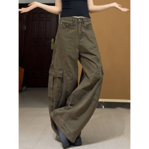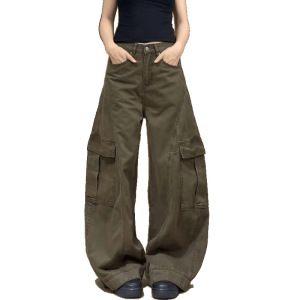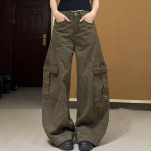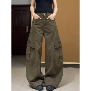 アメリカンクロスボーダープラスサイズレトロハイストリートサイド大きなポケットルーズワイドレッグオーバーオールメンズデコンストラクトデザインパンツ