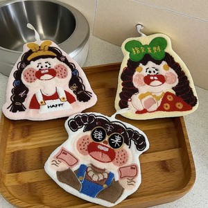 お金が来る、人気の小富貴婦人ハンドタオル、コーラルベルベットハンギングキッチンバスルームタオル、大きな歯の女の子が金持ちになるハンドタオル