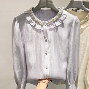 新款韩国气质圆领镶钻钉珠单排扣长袖其它/其它飞飞袖女春季