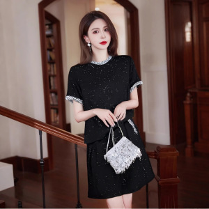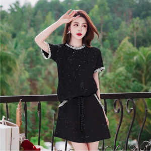 おしゃれなデザインスーツスカート2025夏新作半袖Tシャツとスカート重工業大きいサイズ気質2点セット