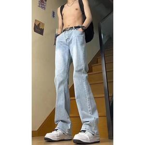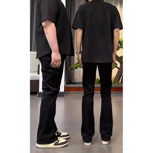 ピュアブラック柳の葉マイクロブレードジーンズボーイズスリムアメリカンバイブパンツクリーンフィットストレートパンツ