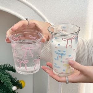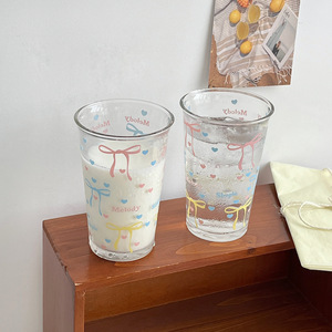 ブロガーと同じスタイルのリボンガラスプリントフレンチレターガラスホームブレックファストカップミルクティーカップコーヒーカップ