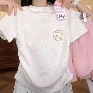 女の子韓国カラフルなドット Tシャツ 2025 夏の新しいラウンドネック漫画プリント半袖トップス西洋スタイルトレンドインスタイル