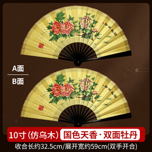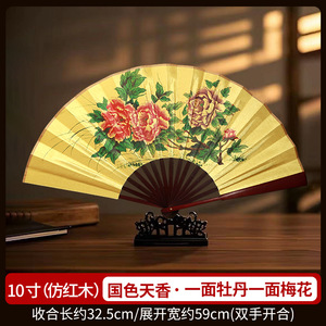 【ダンス扇子は落ちにくい】10inch模造マホガニー - 牡丹の面と梅の花の面[国家の色と天の香り]