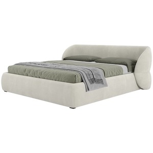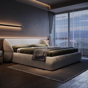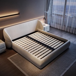 ミニマリストクリームスタイルのラムベルベット生地のベッドシンプルモダンなインターネットセレブクリエイティブデザイナー湾曲したエッジの床から天井までのベッド