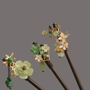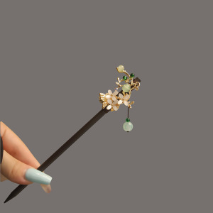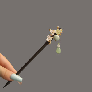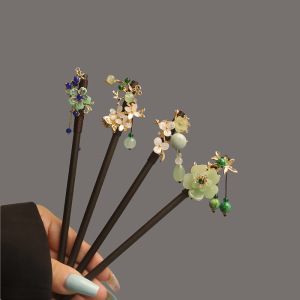 宮殿風黒檀ヘアピン、古代風漢服花ヘアピン、中国風タッセルヘアピン、古代衣装ヘアアクセサリー