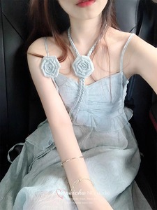 茶歇法式海边度假沙滩蓝色吊带连衣裙女夏季高级感气质收腰长裙子