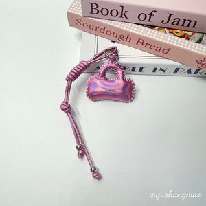 新しい手縫いの小さなバッグペンダント、クリエイティブなDIYレザー充填の小さなバッグペンダント、絶妙な編み込みロープPU小さなバッグキーホルダー
