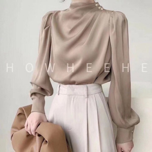 シャツレディースデザインニッチレトロ香港スタイルシャツサテンアセテートプロフェッショナルスタイルファッショナブルなスタンドカラートップ秋