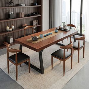 無垢材の色のティーテーブルと椅子の組み合わせ、テーブル1台と椅子5脚、ティーテーブル、新しい中国風の商談オフィス、大型ボードティーテーブル、コーヒーテーブル