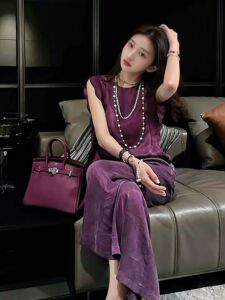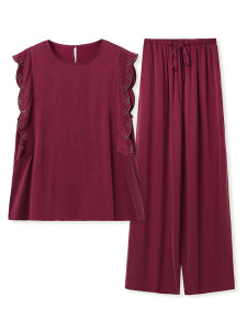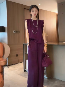 新しい中国風 2025 夏の新ハイエンドソリッドカラーノースリーブレースデザインベストワイドレッグパンツスーツ N5082