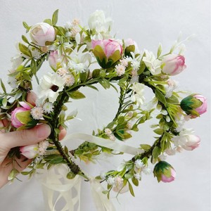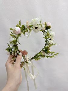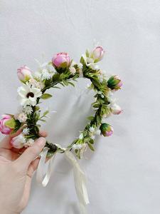 2025年韓国風ブライダルヘアアクセサリー、甘い造花ローズ、森風ツルヘアバンド、卸売巻き付け