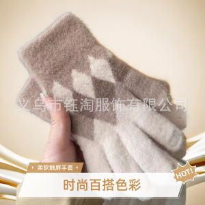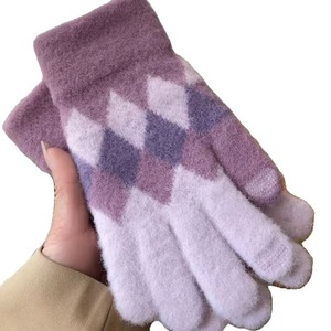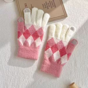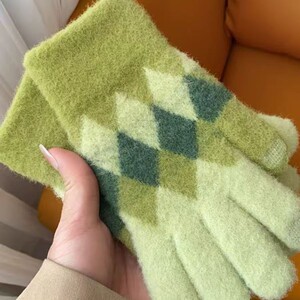 菱形格子枝コントラストカラー冬暖かい手袋女性学生カップル韓国ファッションニット冬タッチスクリーン