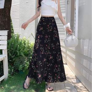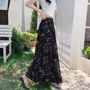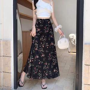 レトロスカート女性のための 2025 春夏新韓国スタイルハイウエストスリム花柄サイドスリット A ラインロングスカート