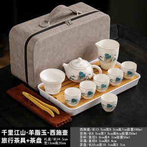 Qianli Jiangshan-Xi Shi ポット トラベル ティー セット + トラベル バッグ + ティー トレイ