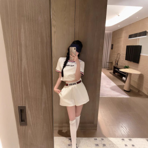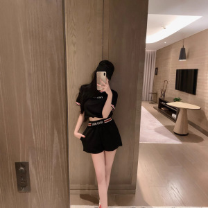 mm Home 25ss 春夏新作 刺繍レターネックライン 半袖T+ショーツセット 黒白