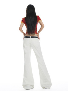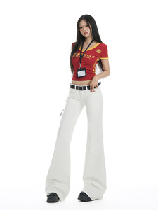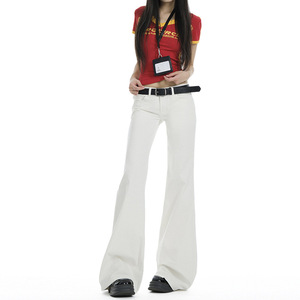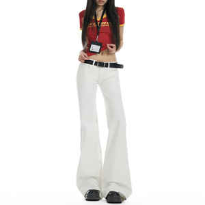 春夏の女性用ホワイトローウエストマイクロフレアジーンズ、新しいスタイル、脚にフィットしない、スリムフィット、伸縮性のあるホットガール、多用途のストレートフレアパンツ
