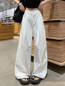 女性のための白いアメリカンオーバーオール2025春と秋の通気性のあるデザイン速乾性ルーズカジュアルワイドレッグパラシュートパンツトレンディ