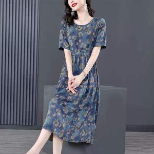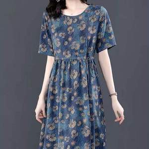中年人妈妈时尚韩版连衣裙女夏季新款宽松中年妈妈气质花裙子