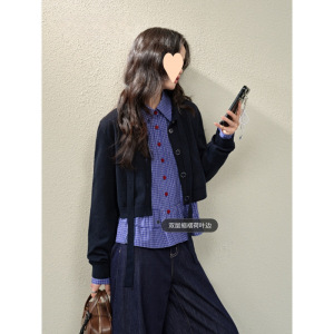 蓝色蝴蝶结针织衫毛衣开衫短外套女2025春季新款小香风上衣秋冬