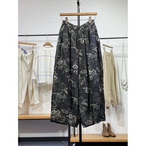 新しいエスニックスタイルのレトロな文学と芸術的なラミープリントの気質通気性弾性ウエスト痩身多用途カジュアルパンツ